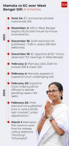 • Supreme Court Intervention via Article 142: On February 20, 2026, the Supreme Court invoked its extraordinary powers under Article 142 to deploy judicial officers from West Bengal, Odisha, and Jharkhand to adjudicate approximately 60 lakh pending cases related to the \'Special Intensive Revision\' (SIR) of electoral rolls. • Core Institutional Dispute: The crisis was triggered by the Election Commission’s (EC) submission that the West Bengal government failed to provide Group ‘A’ officers (SDOs/SDMs) for quasi-judicial functions. Instead, the deployment of lowercadre clerical staff made the scrutiny of \'logical discrepancies\' and \'unmapped cases\' untenable. • Conflict over Micro-Observers: The state challenged the EC\'s deployment of Micro-Observers to assist Electoral Registration Officers (EROs), claiming it was legally unauthorized. The EC justified this as a necessary measure due to the state’s non-cooperation in providing senior executive personnel. • Structural Dependency of EC: The episode highlights a fundamental flaw in the Indian electoral framework—the EC lacks its own permanent field staff. Under Article 324, it must rely on personnel requisitioned from the Central and State governments, which can lead to executive interference or institutional friction. • Constituent Assembly Debate Echoes: The current situation mirrors concerns raised by R.K. Sidhwa in the Constituent Assembly, who argued that staff drawn from provinces would remain beholden to the executive. This contrasts with Dr. Ambedkar’s initial view that a permanent machinery would be an unnecessary financial burden. • Integrity of the Electoral Roll: Despite the publication of the final roll on February 28, 2026, the inclusion of eligible names continues through supplementary lists based on judicial adjudication, ensuring that no genuine voter is disenfranchised due to administrative or political stalemates. Key Definitions • Article 142: Grants the Supreme Court the power to pass any decree or order necessary for doing \'complete justice\' in any cause or matter pending before it. • Special Intensive Revision (SIR): A rigorous process undertaken by the EC to ensure the accuracy of electoral rolls by identifying logical errors, duplicates, and unmapped entries through house-to-house verification or technical scrutiny. • Electoral Registration Officer (ERO): A statutory authority responsible for the preparation and revision of electoral rolls for an assembly or parliamentary constituency. Constitutional & Legal Framework • Article 324: Vests the superintendence, direction, and control of elections in the Election Commission. Article 324(6) mandates that the President or Governor shall make available such staff as necessary for the EC to discharge its functions. • Representation of the People Act, 1950: Provides the legal framework for the preparation of electoral rolls, the qualification of voters, and the appointment of registration officers. • Representation of the People Act, 1951: Governs the actual conduct of elections and the administrative machinery required for the process. • Quasi-Judicial Functions: The task of deciding whether a name should be included or excluded from the roll is a quasi-judicial process, requiring an unbiased application of law and scrutiny of evidence/documents. Additional Important Keypoints • Comparison with Other States: While West Bengal faced a backlog of 60 lakh cases, states like Tamil Nadu and Kerala completed similar SIR exercises within prescribed timelines, indicating a specific breakdown of center-state coordination in Bengal. • Judicial Officer Deployment: The deployment of judges to perform administrative-electoral tasks is rare and signifies the Court\'s lack of confidence in the neutrality or competence of the provided executive staff in this specific instance. • Continuous Updation: Under Section 23 of the RP Act, 1950, names can be added to the roll until the last date of filing nominations, making the \'final roll\' a dynamic document. Conclusion The judicial takeover of electoral roll verification in West Bengal serves as a \'wake-up call\' for electoral reforms. It validates the long-standing demand for a permanent, independent secretariat or a dedicated cadre for the Election Commission. Relying on state-controlled staff for the foundational work of democracy—the voter list—creates a conflict of interest that only judicial intervention could resolve in this crisis. UPSC Relevance • GS Paper II: Appointment to various Constitutional posts, powers, functions and responsibilities of various Constitutional Bodies; Salient features of the Representation of People\'s Act; Structure, organization and functioning of the Judiciary and the Executive. • GS Paper IV (Ethics): Institutional integrity; Conflict of interest in administrative duties; Neutrality of civil servants during elections. • Prelims: Article 142, Article 324, Role of EROs/SDMs in elections, and landmark cases on electoral purity.