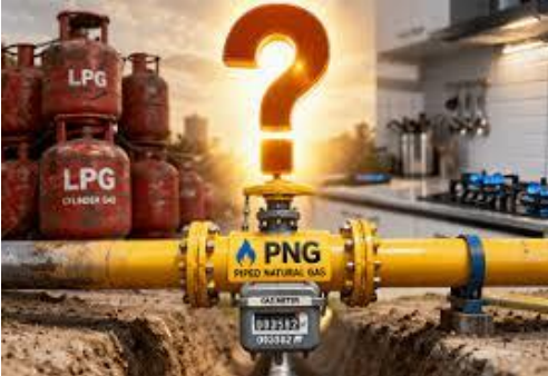 India is currently undergoing a strategic shift in its household energy landscape, moving away from a high reliance on imported LPG cylinders toward a domestically integrated Piped Natural Gas (PNG) network to ensure energy security. • The \'Switch or Surrender\' Mandate: Under the Natural Gas and Petroleum Products Distribution Order, 2026, the government has mandated that households in areas with functional PNG infrastructure must transition to piped gas; failure to do so within three months will result in the cessation of their LPG supply. • Strategic Necessity vs. Imports: India currently consumes 34 million tonnes of LPG annually, of which 60% is imported. With 90% of these imports traditionally transiting through the now-disrupted Strait of Hormuz, the push for PNG is a direct response to external supply shocks and the need for fuel diversification. • Supply & Production Potential: While India has 33 crore LPG connections, officials estimate that domestic natural gas production could eventually cater to 30 crore connections. A projected 25% increase in domestic output, aided by the KG-DWN 98/2 block in the Krishna-Godavari basin, is central to this goal. • Infrastructure Milestones: As of early 2026, India’s gas pipeline network has expanded to over 25,000 km, with another 10,000 km under construction. The government aims to reach 12 crore PNG connections by 2034, requiring a Compounded Annual Growth Rate (CAGR) of approximately 24%. • Operational Advantages: PNG is a \'drop-in\' replacement for LPG in kitchens, offering higher safety as it is lighter than air (dispersing quickly during leaks). Economically, it is positioned to be more competitive, with monthly costs typically lower than those of a 14.2 kg LPG cylinder. • Last-Mile Challenges: Despite aggressive licensing for over 300 geographical areas, nearly 90 regions remain unconnected to main trunk pipelines. Urban \'last-mile\' connectivity and the lack of long-term storage (unlike the European model) remain significant hurdles to achieving total saturation. Key Definitions • LPG (Liquefied Petroleum Gas): A flammable mixture of hydrocarbon gases (propane and butane), stored in pressurized cylinders in liquid form. • PNG (Piped Natural Gas): Natural gas (primarily methane) delivered to consumers through a network of pipelines at low pressure. • LNG (Liquefied Natural Gas): Natural gas cooled to –160°C to turn it into liquid for compact shipping; it must be \'regasified\' at terminals before pipeline distribution. • CNG (Compressed Natural Gas): Natural gas compressed to high pressure (200-250 kg/cm2), used primarily as a cleaner fuel for internal combustion engines in vehicles. Constitutional & Legal Provisions • Essential Commodities Act, 1955: The legal bedrock for the 2026 Order, allowing the government to regulate the distribution of petroleum and gas as essential products. • Entry 53, List I (Union List): Grants the Union exclusive jurisdiction over \'Regulation and development of oilfields and mineral oil resources; petroleum and petroleum products.\' • Article 38 & 39 (DPSP): Directs the State to promote the welfare of people by securing a social order where resources are used for the common good (Energy Justice). • PNGRB Act, 2006: Established the Petroleum and Natural Gas Regulatory Board to protect the interests of consumers and entities engaged in specified activities relating to petroleum and natural gas. Conclusion: The transition from LPG to PNG is no longer merely an environmental preference but a national security priority. By leveraging the \'One Nation, One Gas Grid\' framework and implementing the 2026 mandate, India seeks to insulate its households from the volatility of West Asian geopolitics. While the \'just-intime\' nature of the LNG system poses risks, the long-term benefit lies in a more stable, cost-effective, and domestically anchored energy ecosystem. UPSC Relevance • GS Paper III (Economy & Energy): Critical for topics like \'Energy,\' \'Infrastructure,\' and \'Investment Models.\'