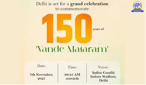 - વંદેમાતરમના ૧૫૦વર્ષપૂરાથવાનાપ્રસંગેપ્રધાનમંત્રીએ૭નવેમ્બર૨૦૨૫નારોજવર્ષભરચાલનારાઉજવણીઓનુંઉદ્ઘાટનકર્યુંહતું. બંકિમચંદ્રચેટરજીદ્વારારચિતરાષ્ટ્રીયગીત \'વંદેમાતરમ\', ૭નવેમ્બર૧૮૭૫નારોજઅક્ષયનવમીપરલખાયેલુંહોવાનુંમાનવામાંઆવેછે.