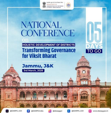 • Conference Theme and Objective: Organized by the Department of Administrative Reforms and Public Grievances (DARPG) in Jammu, the conference centers on \'Holistic Development of Districts: Transforming Governance for Viksit Bharat.\' Its primary goal is the dissemination of award-winning governance models to improve service delivery and citizen welfare. • Institutional Collaboration: The event marks a significant collaborative effort between the Central Government (DARPG) and the Government of Jammu & Kashmir. It serves as a platform for District Collectors and senior administrators to share \'Prime Minister’s Awards for Excellence in Public Administration\' winning initiatives. • Scalability of Best Practices: The sessions focus on successful models from diverse regions like Eluru (Andhra Pradesh), Gomati (Tripura), and Kargil (Ladakh). By showcasing these, the government aims to institutionalize and scale up impactful grassroots innovations across the country. • Focus on Aspirational Blocks and Innovation: Technical sessions specifically target the development of aspirational blocks and \'innovation projects\' (such as PRISM 10 in Parvathipuram). This emphasizes the transition from basic governance to technology-led, data-driven administration. • Regional Governance Milestones: A dedicated segment highlights J&K\'s local innovations, including RFID-enabled Yatra management by the Shri Mata Vaishno Devi Shrine Board and the e-Suvidha initiative in Ramban, signaling a robust digital push in the Union Territory. • Path to Viksit Bharat: The conference underscores the \'Saturation Approach\' for flagship schemes and effective grievance redressal. It identifies the \'District\' as the primary unit of change to accelerate India\'s journey toward an inclusive, citizen-centric developed nation by 2047. Key Definitions • Viksit Bharat: The government\'s vision to transform India into a developed nation by 2047, the 100th year of its independence, focusing on economic growth, social progress, and good governance. • Saturation Approach: A governance strategy aimed at ensuring 100% coverage of eligible beneficiaries under various government flagship schemes without any leakage or exclusion. • DARPG: The Department of Administrative Reforms and Public Grievances; the nodal agency of the Government of India for administrative reforms and redressal of public grievances. • Good Governance: An approach to government which is committed to creating a system that is transparent, accountable, responsive, effective, and efficient. Constitutional & Legal Provisions • Article 312: Relates to All India Services. The conference involves the \'Steel Frame\' of India (IAS/IPS) in reimagining public service delivery. • 73rd and 74th Amendment Acts: These constitutional amendments institutionalized Panchayati Raj Institutions (PRIs) and Urban Local Bodies (ULBs). The conference\'s focus on \'Districts\' directly complements the spirit of decentralized governance. • Statutory Bodies: The mention of the Shri Mata Vaishno Devi Shrine Board reflects the role of statutory autonomous bodies in implementing technology-led governance (RFID management) under specific state/UT legislations. Additional Key Pillars of Governance • Digital Public Infrastructure (DPI): Use of platforms like e-Suvidha and RFID highlights the reliance on DPI to ensure transparency and ease of living. • Cross-Learning Ecosystem: The participation of 200+ delegates from different states fosters \'Cooperative Federalism\' by allowing states to learn from each other’s successes and failures. • Grievance Redressal: A core focus area of the conference is strengthening mechanisms like CPGRAMS at the district level to ensure the administration is responsive to the common man. Conclusion The National Governance Conference in Jammu acts as a catalyst for \'Minimum Government, Maximum Governance.\' By shifting the focus to the holistic development of districts, the government recognizes that the macro-vision of Viksit Bharat can only be achieved through micro-excellence at the district level. This gathering of administrative minds ensures that innovation is not localized but is documented, shared, and replicated to create a uniform high-standard of governance across India\'s diverse geography. UPSC Relevance • GS Paper II: Governance, Constitution, Polity, Social Justice; Important aspects of governance, transparency and accountability, e-governance applications, and models. • GS Paper IV: Public/Civil service values and Ethics in Public administration; Case studies on innovative public service delivery. • Prelims: Prime Minister’s Awards for Excellence in Public Administration; DARPG’s role; Themes of National Conferences on e-Governance.